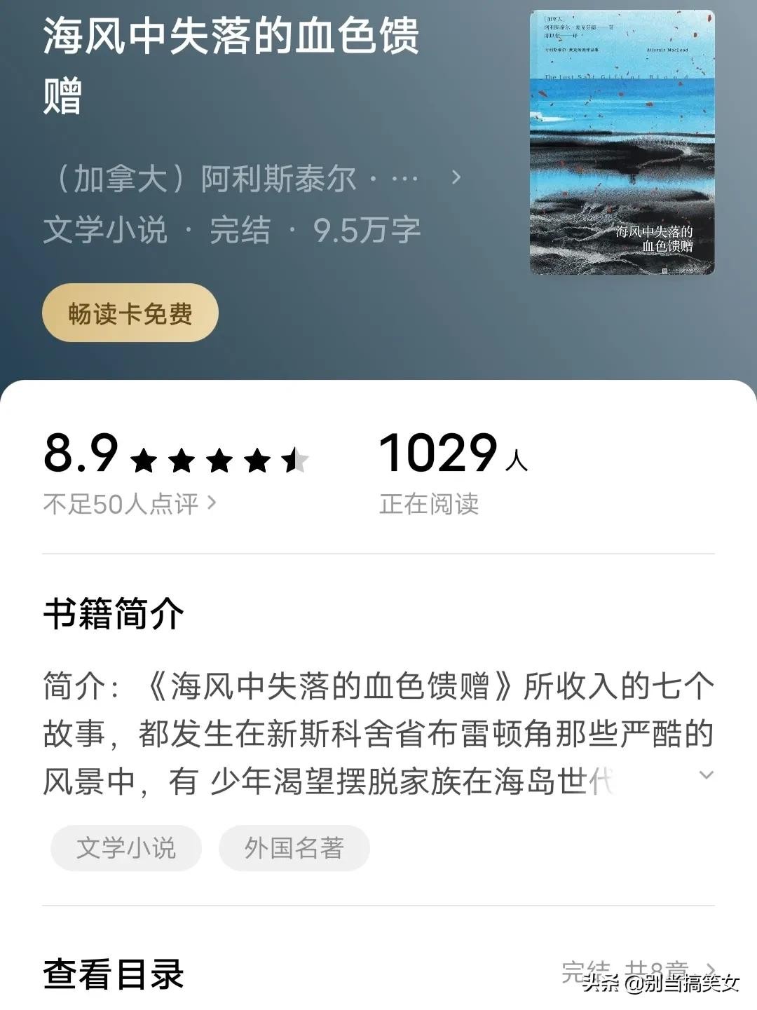 5.《海风中失落的血色馈赠》所收入的七个故事,有少年渴望摆脱家族在海岛世代挖煤的命运而在成年之际离家远行,有人到中年的大学教师回忆少年时他那心怀壮志但困居海岛打鱼为生的父亲,有散居各地的大家族在老祖母96岁生日之际齐聚老祖母寡居的海角……这些故事勾画了男女之间、父母与子女之间紧密的纽带和难以逾越的鸿沟,既温柔又残酷。