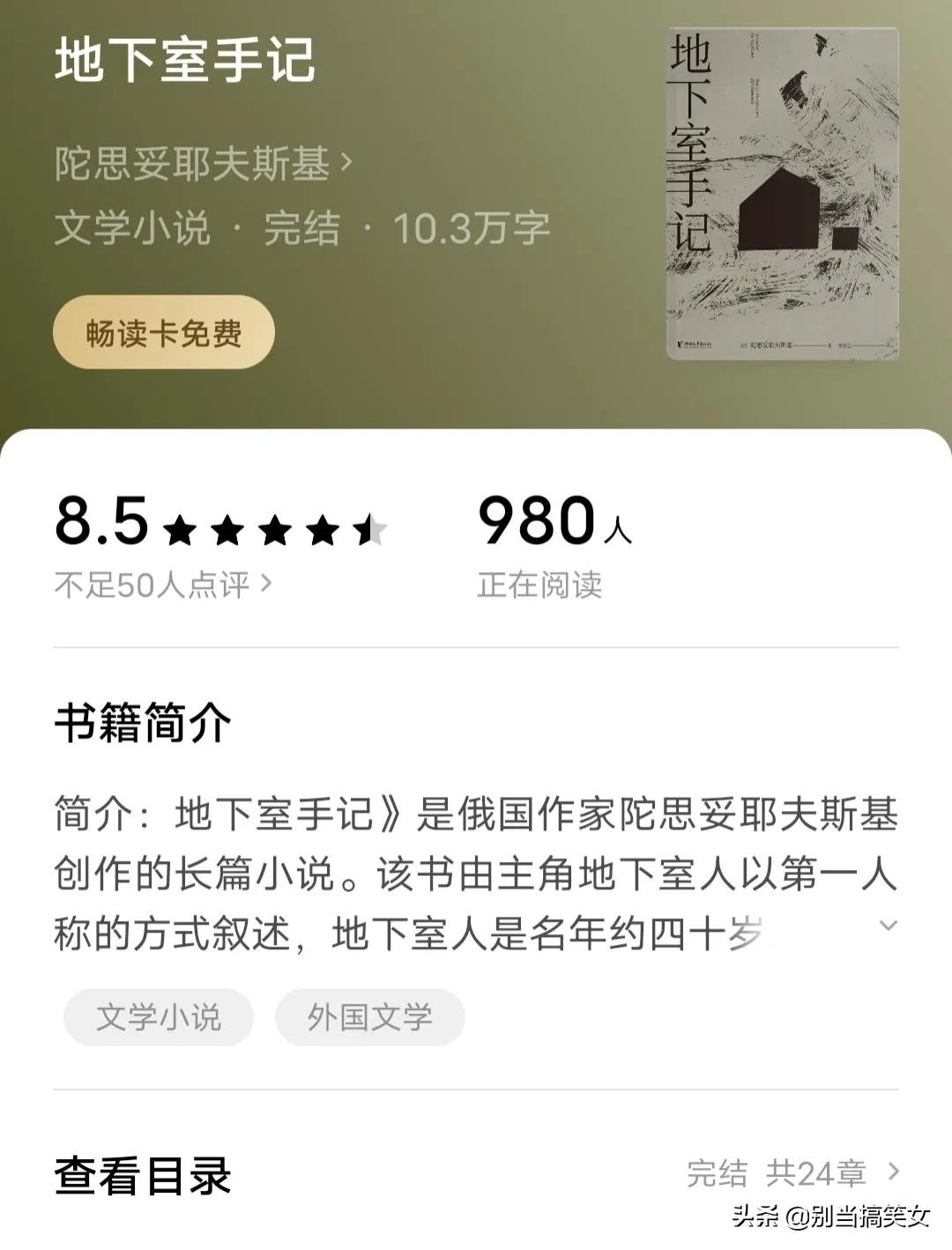 2.《地下室手记》该作主要讲述了主人公“地下室人”的内心思想活动。
