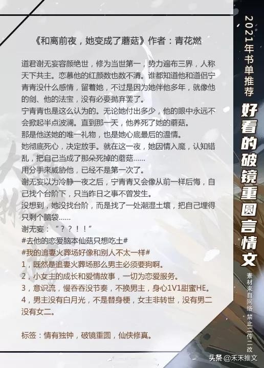 哈喽哈喽,小伙伴们,大家好,我是有着十几年书龄和如今还喜欢读小说和分享小说的禾禾。