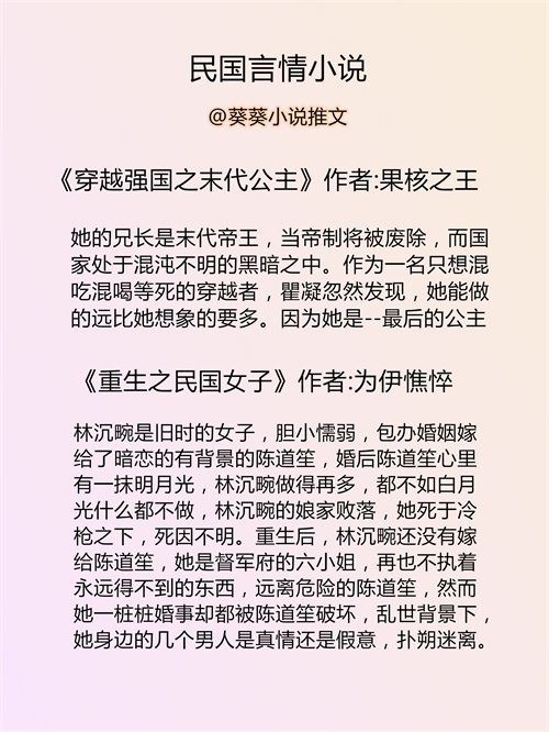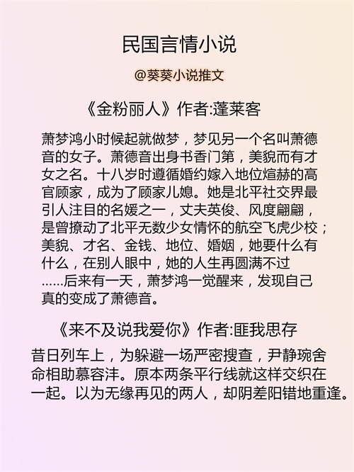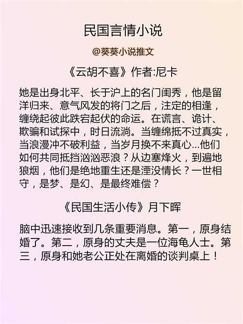 葵葵推文:民国言情小说推荐丨民国文推文书单