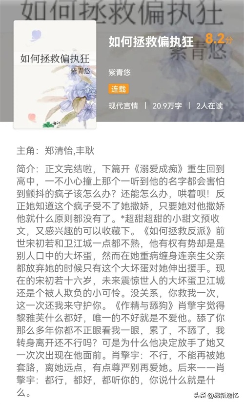 这个是女主重生回到高中的时候,遇到了男主,男主有个外号叫疯狗,哈哈哈哈,整体来说就是一个小甜文,男主有多疯在女主面前就有多乖,也还挺好看的