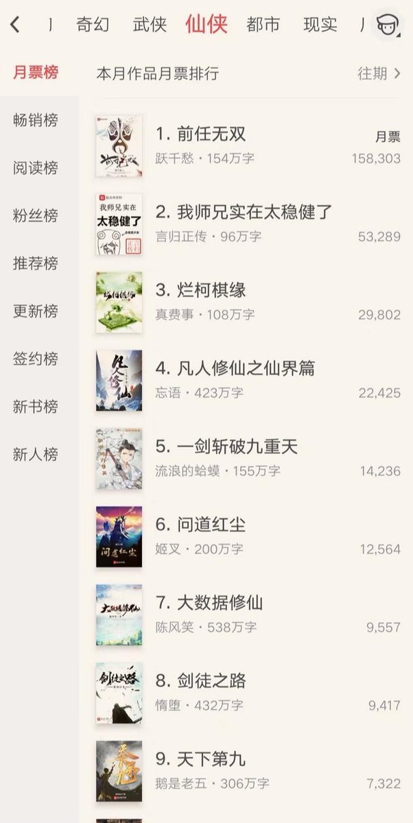 修仙小说排名榜前10,凡人修仙排名第4名,第一名是这本书