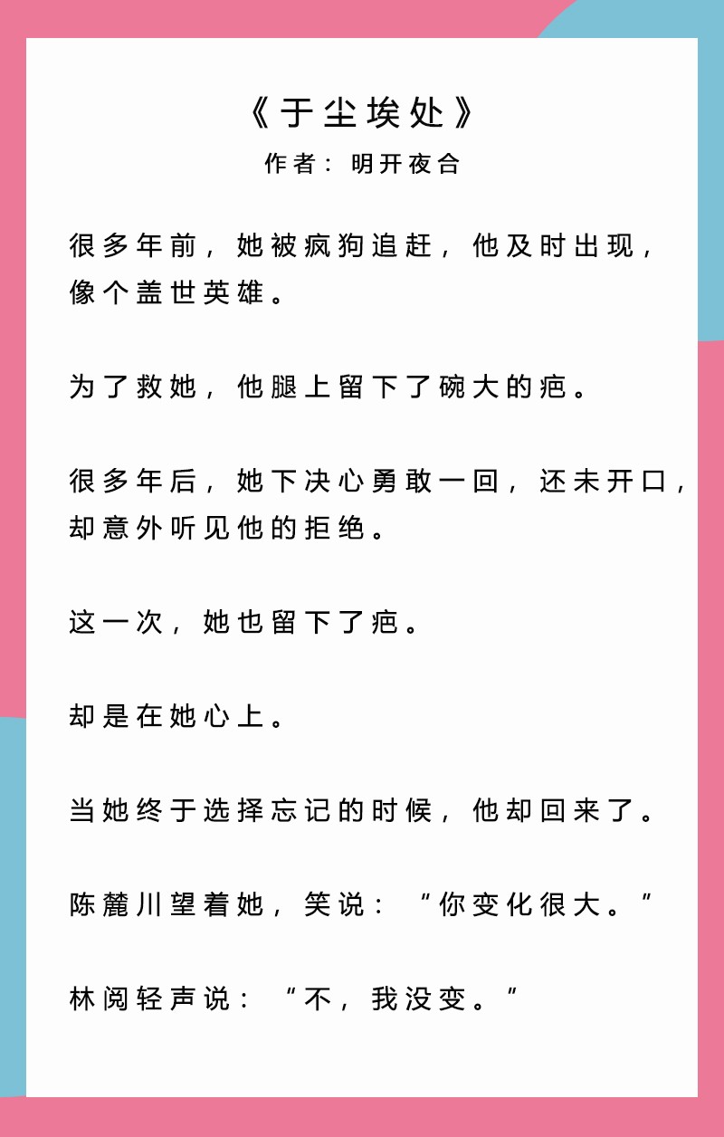 所以,当年我看《于尘埃处》的时候,真心觉得10年后依旧能够重逢在一起,很不容易。虽然女主在里面爱得有些卑微,高中为了男主选了理科,大学为了和男主一个班填了和他相同的志愿。后来即便男主出了国,她毕业后还是选择了他向往的相关行业。但是后来,其实她并没有在等他,只是忍不住,一直喜欢着,未能放下……幸运的是,多年后缘分让彼此再度相逢,随着相处打开了双方的心结,发现原来这不是一场单向暗恋。