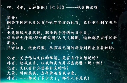 四、《乖,大神别闹![电竞]》—---吃青梅酱呀