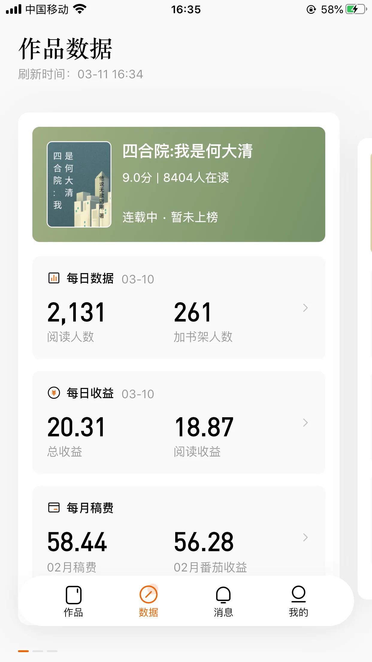 左边的3月10日收益81就是完结后,昨天的收益了。要知道我这完结的小说也已经完结半个月左右了。