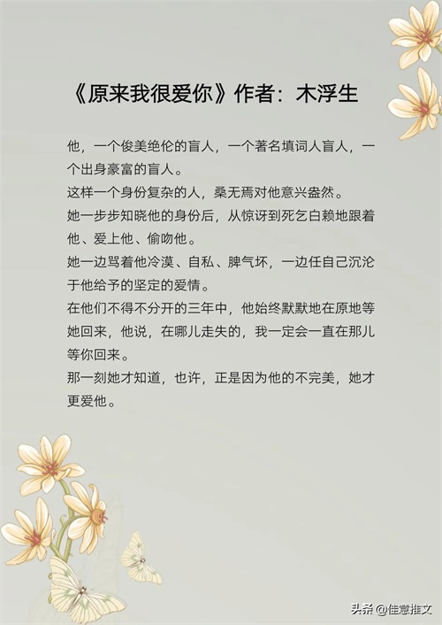 2.《原来我很爱你》作者:木浮生/(眼盲)