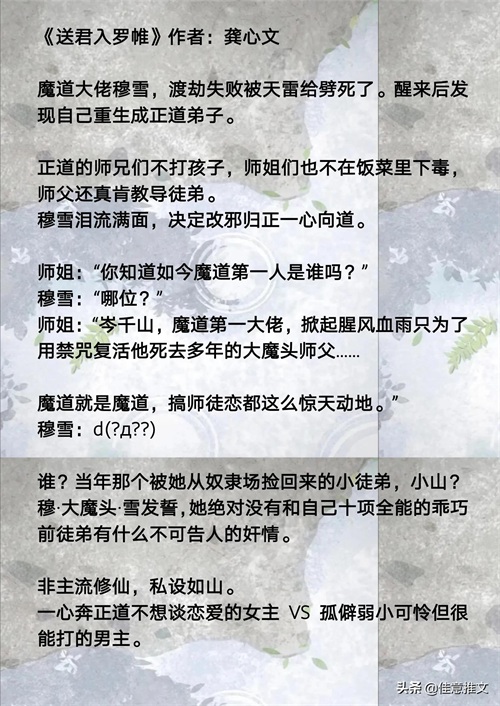 今天推荐的是女主是师父,男主是徒弟的小说,这一类型的小说还挺少的,师徒文好像男主是师父的多一些,不过这些读来也是一番滋味,如果喜欢的话就去看看吧!