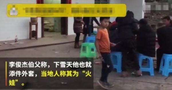 据当地人称,男童在当地不怕冷是出了名的,大家都喜欢叫他“火娃”。因为他整个冬天都是穿着几件薄薄的衣服到处乱窜,不过平时看他也挺孤独的,没什么人陪他,有人给衣服他穿,他也倔强地喊着:\"不穿!“在逗得大家哈哈大笑的时候,孩子却仍是一脸严肃。