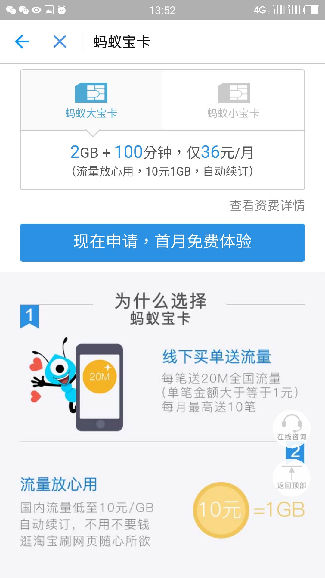 今天申请到了蚂蚁宝卡流量多还有靓号