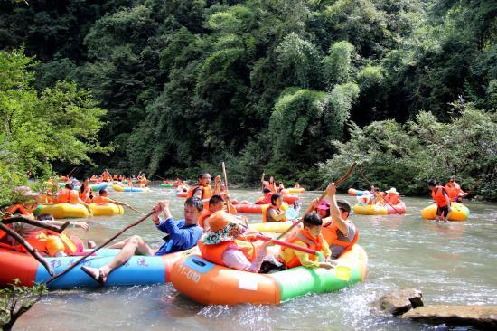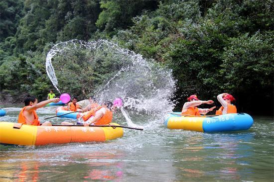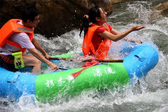 杉木河位于施秉县的崇山峻岭中,起漂点距离县城14公里,常年水流量为4.2立方米/秒,其因水质清纯、有惊无险自助漂而被誉为“矿泉河”。(记者 王晓 图片/施秉县旅游部门)
