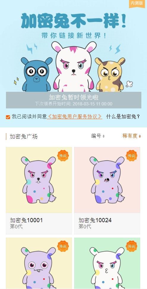 如今区块链成为当下一个非常火热的话题,此前,小米的区块链宠物“加密兔”曝光。现在,这款“加密兔”已经正式进入内测阶段,用户每天11点可以限时领养,每天数量有限。而除了抢购获得外,还可以通过抽奖、邀请好友以及兑换F码等方式获得。