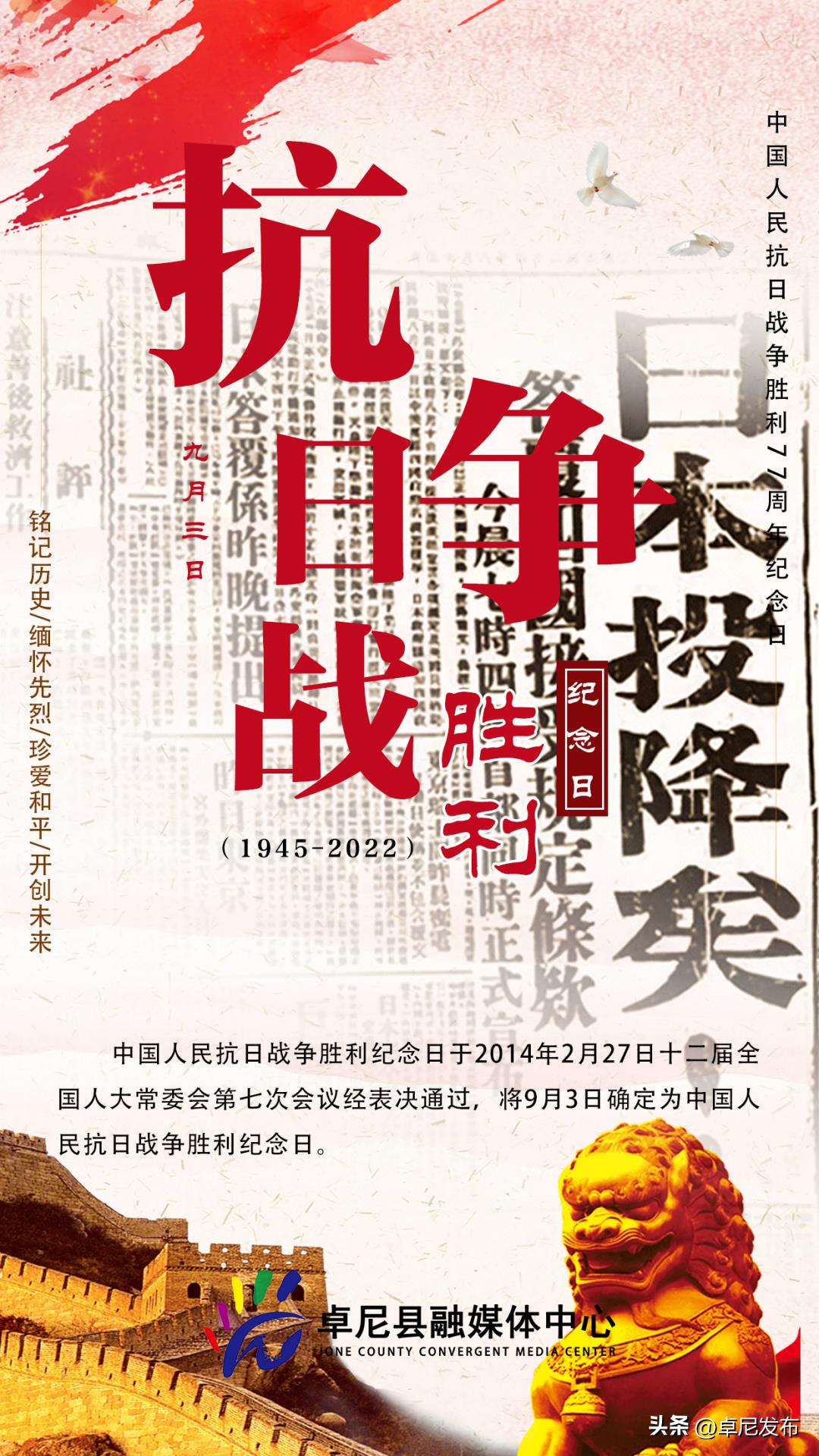 是中国抗日战争胜利77周年纪念日,
