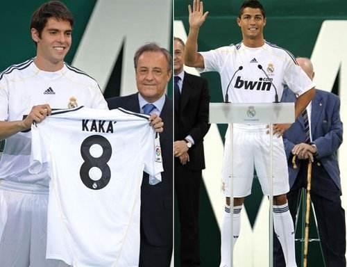 2009年,卡卡和C罗作为前两个年度的金球奖得主,先后加盟豪门皇家马德里,这成为那一年最轰动的新闻。