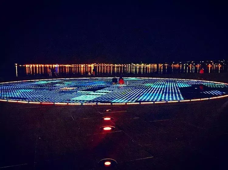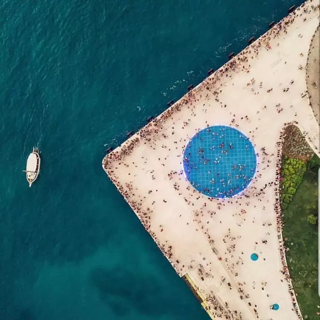 这个海岸广场从空中俯瞰有一个小蓝点,克罗地亚人喜欢到傍晚的海边躺着休息,吹一吹海风,听一会海风琴的演奏,静静地等待海上的日落。