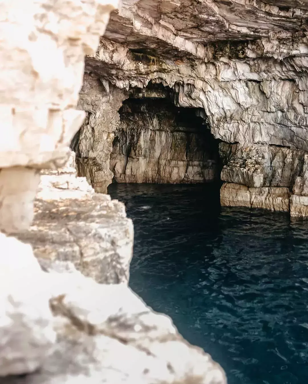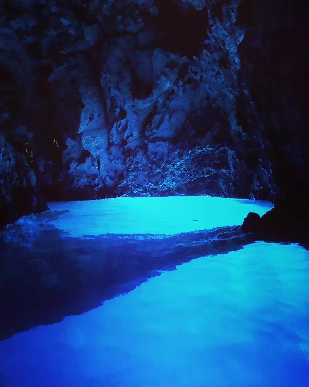 最有名的比舍沃岛蓝洞在亚得里亚海中心,在夏季的上午 11 点到中午 12 点间,阳光恰好可以照进洞穴内部,经过水面的反射,整个洞穴都沐浴在海蓝色宝石般的氛围中。