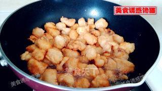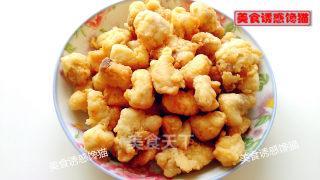 6将鱼丁炸至八成熟捞出,再用八成热的油温复炸一遍,这样保证鱼丁外壳酥脆。