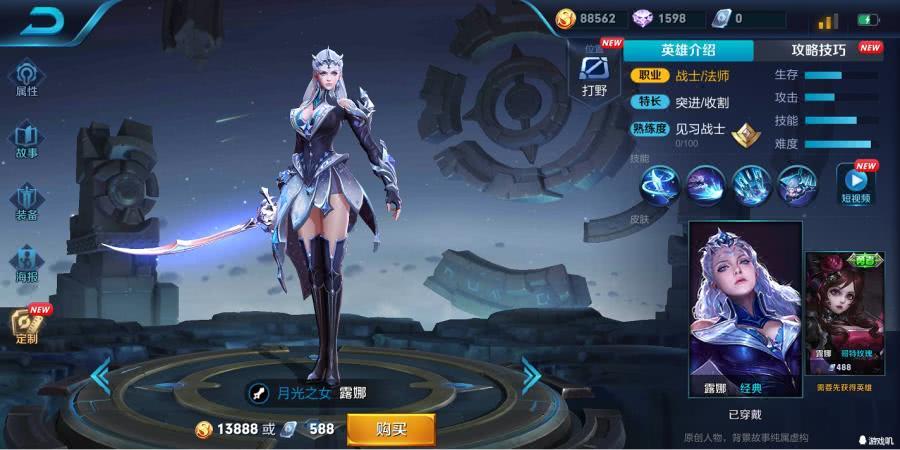 露娜的新建模大家应该看过很多遍了,这次的体验服更新把露娜的新封面也解禁了,身材、气质和以前的露娜大不同,感觉高贵了不少,和铠一看就是两兄妹……