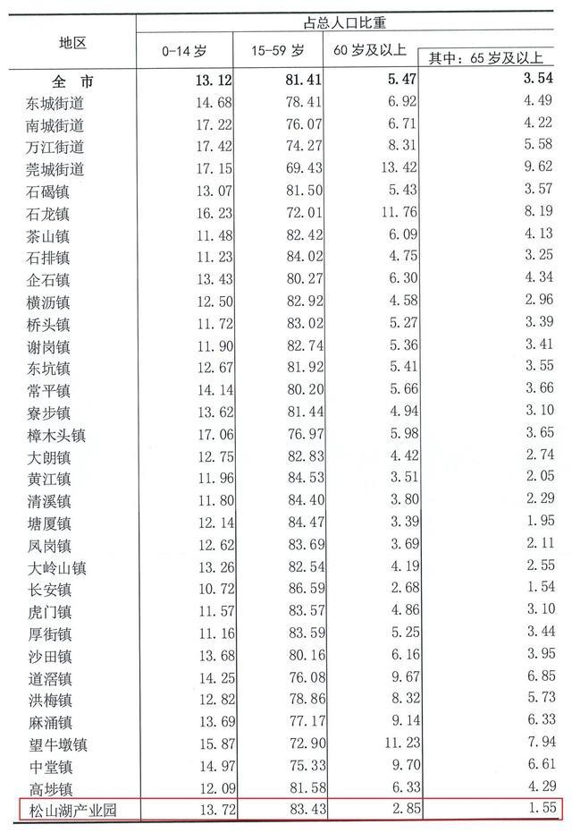 东莞人口“年轻化”,60岁以上的老人占不到10%;在常住人口年龄构成中,东莞0-14岁人口占比13.72%;15-59岁人口占比83.43%;60岁及以上人口占比2.85%。