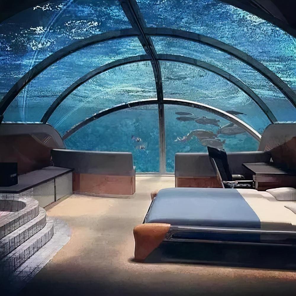 目前这个酒店据报道住一晚至少4万元的高昂价格,对普通人而言,不知道与学习游泳潜水相比,哪一个更令人望而却步。