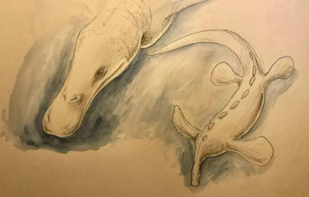 上世纪70年代,古生物学家在湖北的远安考察的时候,发现了这种动物的化石,但是早期发现的扇桨龙化石都没有头部,只能看到它肥肥的身体和两对大鳍状肢。于是乎这种故事呢鼓舞就被命名为扇桨龙。一直到2018年,古生物学家才发现扇桨龙的头骨化石,原来这家伙长着一只鸭子嘴。
