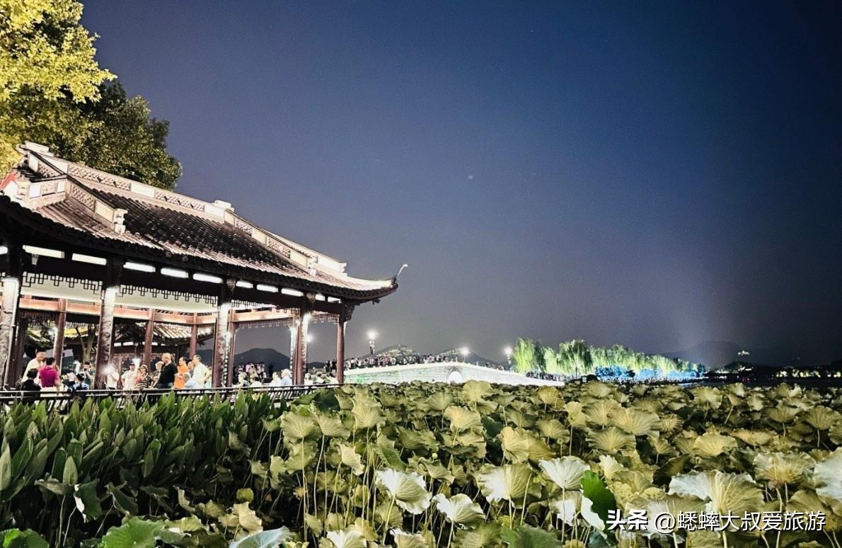 作为杭州三大情人桥之一的断桥,到了晚上更是流光溢彩,搭配着白堤、荷花、宝石山、古亭形成了一幅画。游走其中,还能感受到湖风吹拂,视觉、感觉、触觉瞬间拉满!想要拍照的小伙伴,可以在断桥上拍宝石山、以后是城市夜景,也可以在北山路拍断桥盛荷夜景,都是非常不错的角度。时间多的小伙伴,可以按照断桥——白堤——平湖秋月——西泠桥——北山路——断桥游逛一圈,能够感受到最惊艳的一幕!