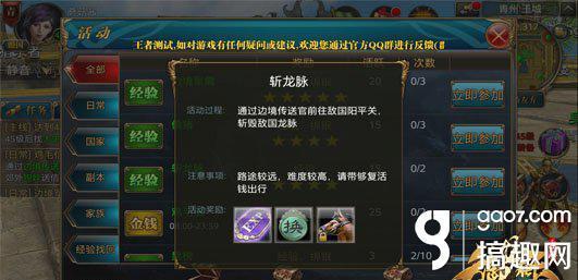玩家经常会因为角色等级不够,而无法进行主线任务,这时候就需要去完成日常活动,来获得足够的经验,使角色升级,今天就来个大家介绍下国家活动中斩龙脉的玩法。