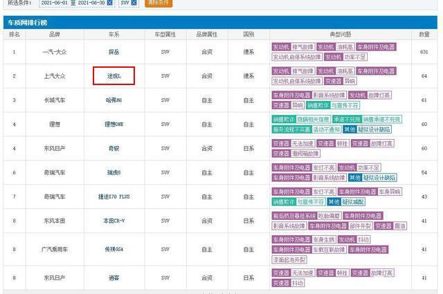 其实自国六排放实施初期,在车质网上就看到了不少关于探岳等大众车型排气不畅的投诉,不过当初投诉者较少并将没有形成一定规模,所以这件事并未引起大家以及车主的关注,直到一位车主在网上曝出大众为满足国六排放而加装GPF颗粒捕捉器导致三元催化器堵塞,而导致动力不足、油耗飙升以及售后不作为后,越来越多的车主则争相加入了维权大军,而随着这件事的不断发酵,显然已经殃及途观L了,在6月份质量投诉排行中,探岳排名第一,而第二则是途观L,那么是不是可以断定,途观L销量下跌就是颗粒捕捉器事件导致呢?