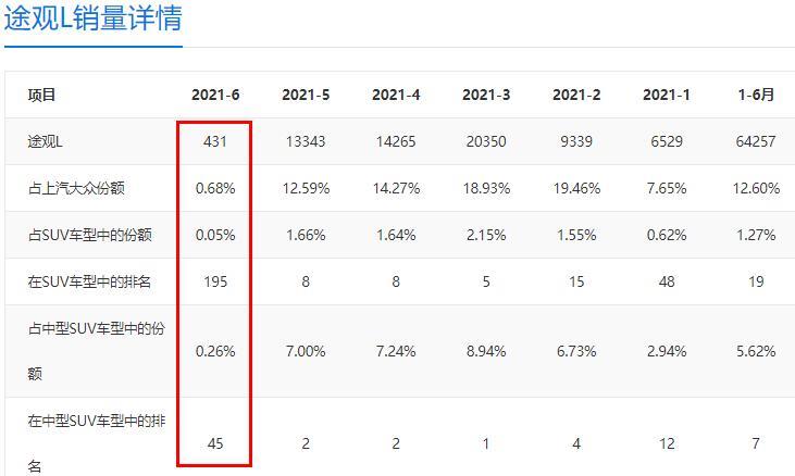 难以想象,6月份途观L仅卖出431辆,大众的顶梁柱这是怎么了?