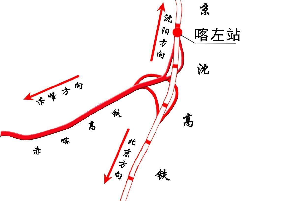 需要说明的是,赤峰高铁在设计上,去往沈阳方向经过喀左站,进京方向不经过喀左站。(如上图)