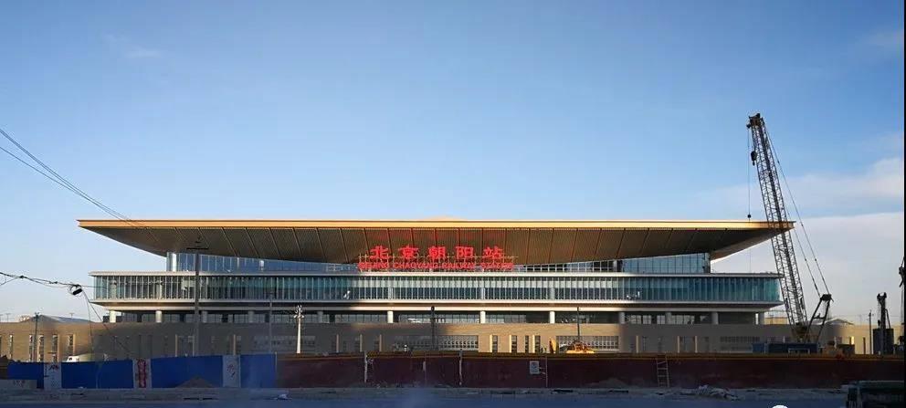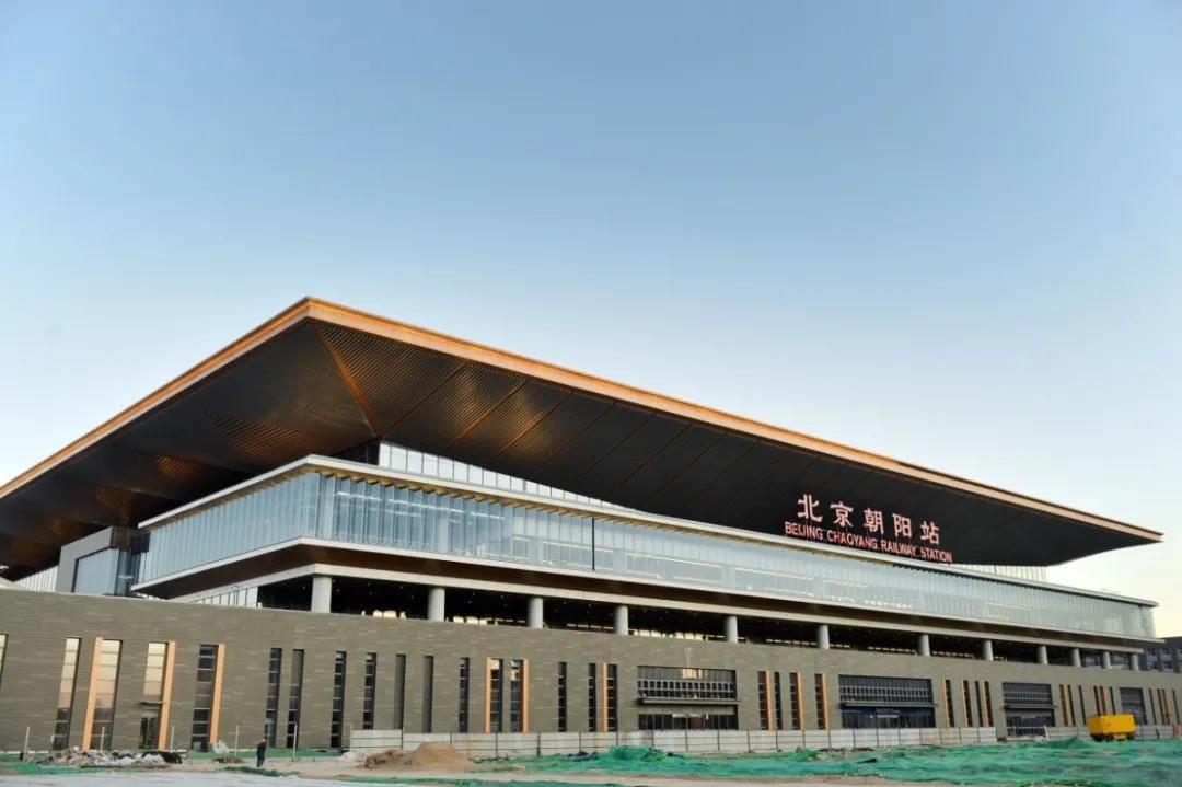 作为京沈段始发站,也是规模最大的站房——北京朝阳站,总建筑面积18.3万平方米,设7台15线,汇集高铁、部分普速列车、市郊铁路东北环线,将成为北京东北部地区新的大型综合交通枢纽。