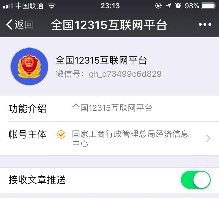打开微信, 搜索12315, 找到“全国12315互联网平台”公众号,并关注。