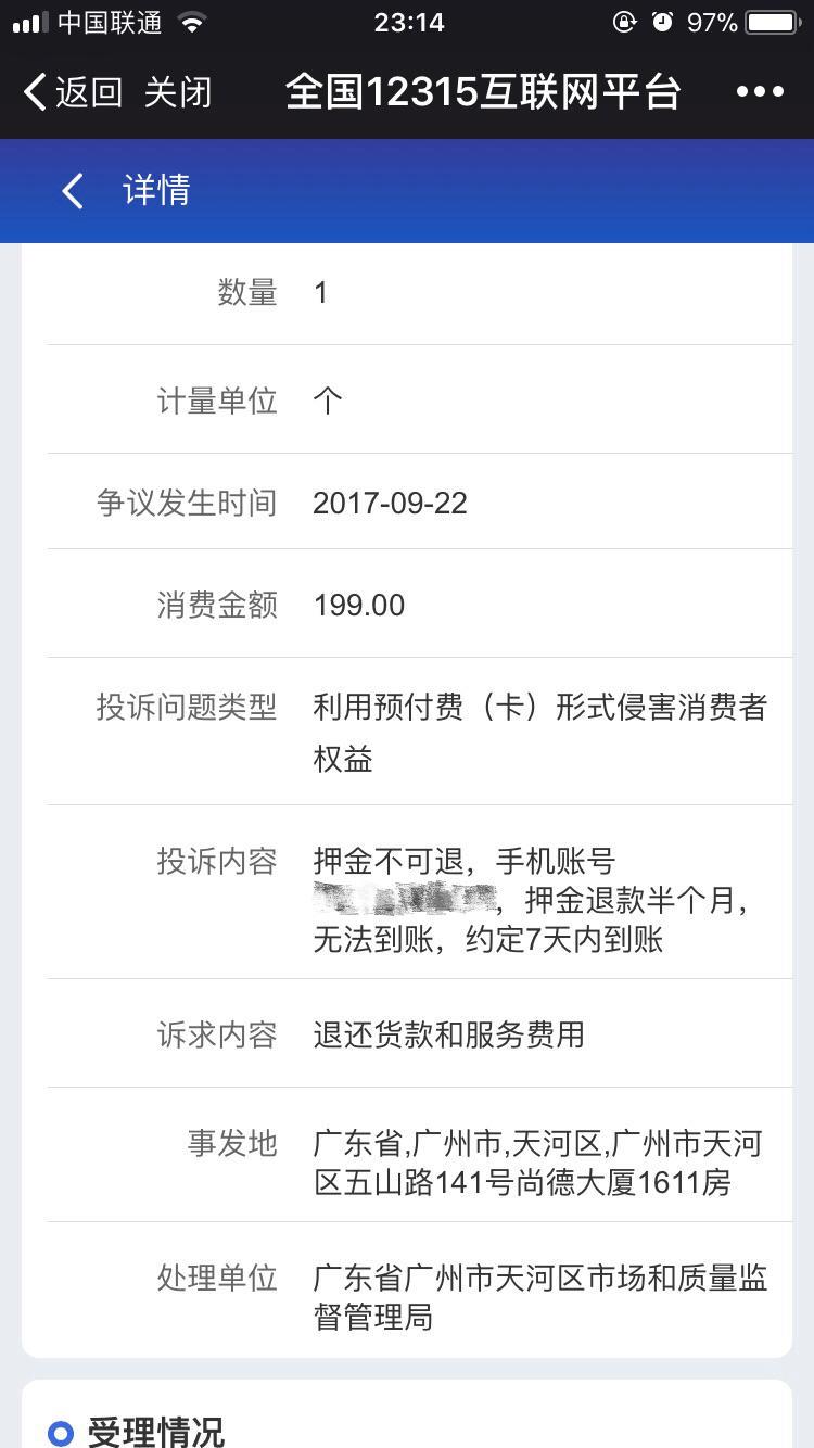 过几天之后,就可以查询到处理状态,已经变成“受理中”。