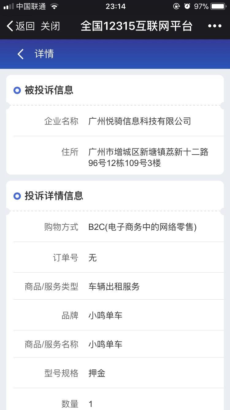 退押金问题,属于消费者权益被合法侵犯的问题。可以通过12315投诉要求消费者权益保护。下面以“小鸣单车”为例,介绍如何投诉维护自己的基本权益。