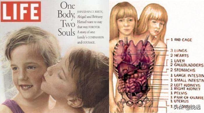 那么先从她们的诞生介绍起吧,1990年3月16日这一天,在美国明尼苏达州,美国阿比盖尔和布列塔妮出生了,大家没想到的却是“双头连体”双胞胎,她们共有两个头颅、两个大脑、两只胳膊、两条腿和一个肝脏、一条大肠、一条小肠、一个膀胱、一个子宫和一个*道和两根在骨盆处融合的脊柱,但却只有一个身体。