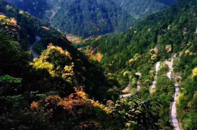 全长11公里,落差近千米,以叠翠九十九弯著称,180度的回头弯数十个。入秋,沿盘山公路向上,一个华丽的彩林画卷就开始浮现,秋色层层叠叠,宛若立体廊。