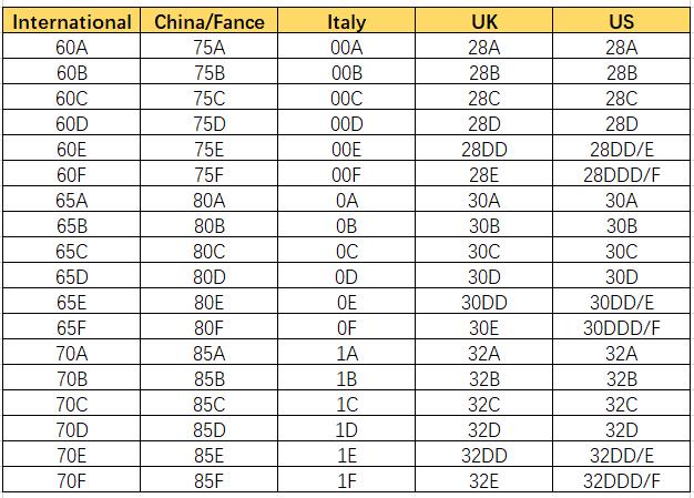 虽然我不想承认,但是英国的内衣并不太适合瘦小的女生。欧洲人丰满的身材导致内衣对小胸妹妹并不是很友好呢。中国码是以厘米为单位的,UK和USA码都是英寸为单位(1英寸=2.54厘米)。