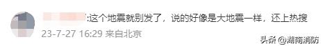“刚刚在单位沙发上午休,突然沙发震动了,立马惊醒。”7月27日下午3点,常德澧县的张女士突然惊醒,只感觉沙发在晃动,“沙发大概晃了3秒,我赶紧起来,担心是地震,一出办公室,发现很多人都在往楼下跑。”