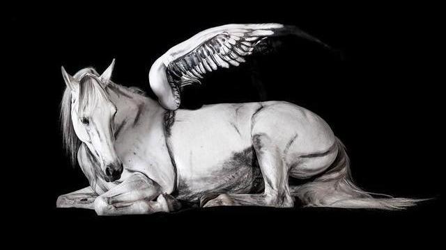 这匹长着翅膀的白色飞马简直栩栩如生!无论是马的整体造型,以及马的身体结构细节,还有马头、马耳朵,以及马背上的白色翅膀,都刻画得极其逼真,说实话,我对着这幅画看了足足五分钟,也只认出来画面中两处比较明显的部位由人体构成,你看出来这匹马究竟由几个人组成了吗?