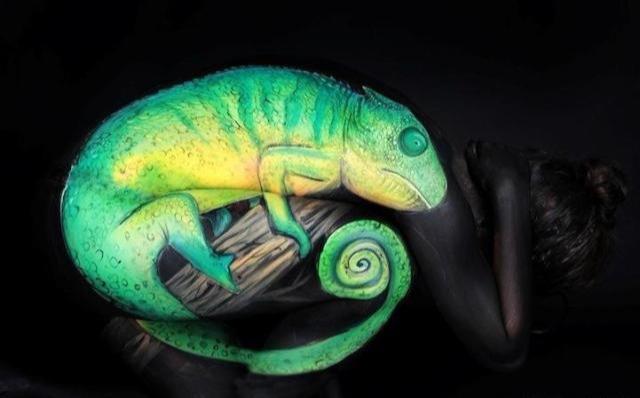 有趣的人体彩绘:他在人体上画动物,简直以假乱真
