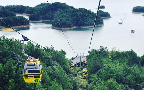 坐在缆车里,随着缆车徐徐升高,可以360度欣赏千岛湖美景。不同的角度,有不同的风景;不同的高度,有不同的风光。梅峰索道带您在空中饱览千岛秀色,感受流动观景之乐趣。乘坐索道就可直达山顶观景台。在观景台上极目所至,无限风光,尽收眼底。近看列岛星罗棋布,湖岛相拥,山水相映;远眺群岛若隐若现,重峦叠嶂,景色宜人。