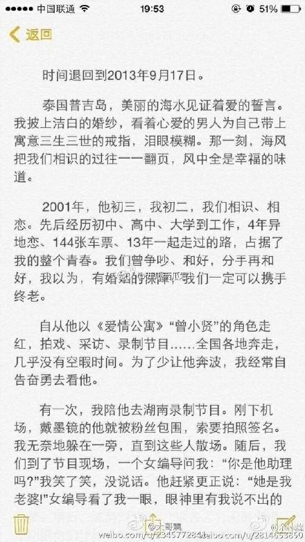 陈赫前妻的千言书,如此的深情,网友:看完我都要哭了!