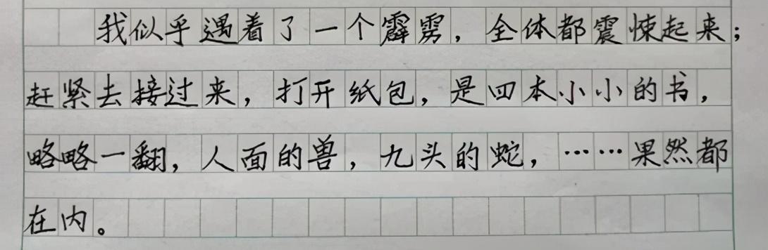 4. 破折号和省略号,如果一行只剩一个作文格了,破折号和省略号的一半写在作文格里,另一半写到作文格外。如果一行写满字,没有作文格了,破折号和省略号写到下一行的开头。