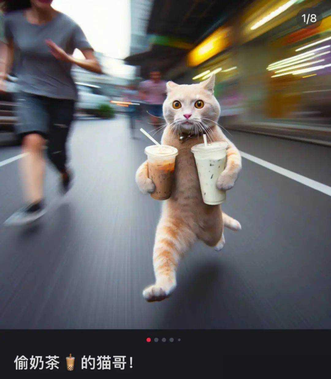 与真实宠物相比,AI猫猫的魅力之处在于它们可以随时随地根据场景和需求进行表达,而且不会受到时间和地域的限制。你想要一个穿着西装吃泡面的胖乎乎加菲猫?AI猫猫马上满足你。你想要一个天天拿着奶茶偷偷摸摸的小偷猫?AI猫猫也可以做到。不管你想要什么样的猫猫,只要你开心,AI猫猫就能给你带来欢乐和娱乐。