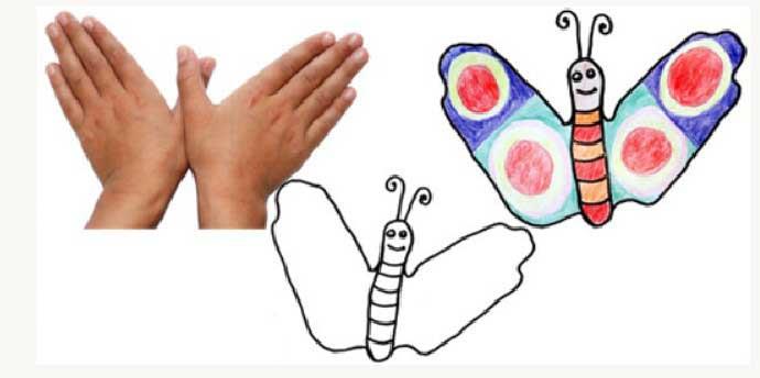 张开的手掌就是蝴蝶的一对翅膀…幼儿园手掌印画:百变小手