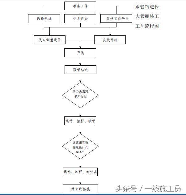 跟管钻进长大管棚施工工艺流程图
