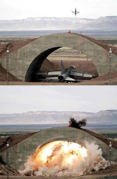 而号称炸弹之祖的美军MOP最大常规钻地弹,整个炸弹重13.5吨,其战斗部外壳采用镍钴钢合金制成,能够穿透60米的一般混泥土,40米深的坚硬岩石,8米深的超强加固混泥土。内部装有2.7吨高性能炸药, 其威力是美国空军现役最大威力弹药的3.5倍。因此对于一般的加固目标如地面碉堡、地下军事基地等,只要命中就相当于毁灭,是除了核武器外人类对加固掩体侵彻能力最强的武器。就算没有命中,MOP在目标附近爆炸,土壤或岩石也能最大限度地将爆炸威力转为地震波而达到对目标设备进行破坏并杀伤人员。