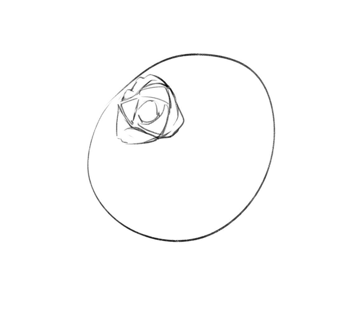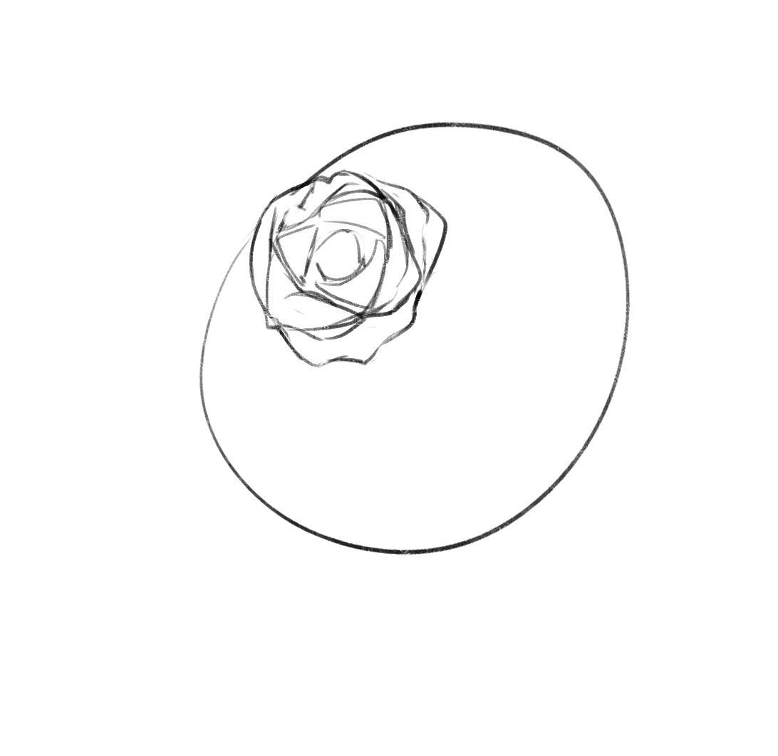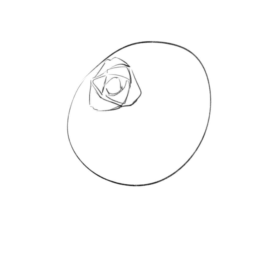 首先画一个圆圈,在圆圈中确定好花蕊的位置。
