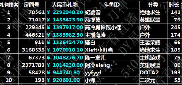 斗鱼绝地求生一姐妃凌雪超越冯提莫,占据礼物榜排名第一!