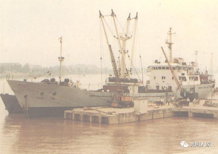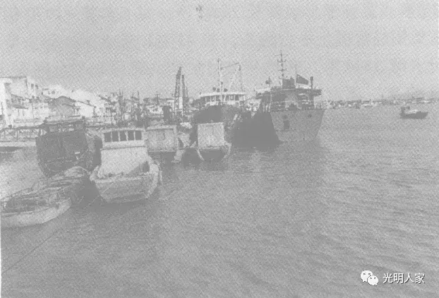 码头货场上,时鲜农副产品中最多的是蚕豆,产于平阳矾山的明矾也引人注目,还有鳌江大地出产的优质花岗岩石槽、石磨等庞然大物。把港口装点得多姿多彩。我问码头工人:“这些货物运到哪里?这里面有没有出口的物资?”一位“老码头”爽朗的说:“这些嫩蚕豆是运往上海市场的......,要说出口,县外贸局和外贸公司就在鳌江镇,这两年平阳县的外贸事业也发展很快,从我们这儿和鳌江汽车中心站水、陆两路转运的出口物资也多了,什么梭子蟹、鳗鱼苗啦、明矾、摩袋、草席、管子钳、电熨斗啦......”