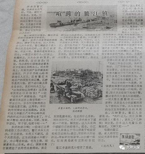 文章结尾,作者以“喧腾的鳌江镇,使人感觉它处处充满着青春的活力。”总之,在改革开放之初,火热八零年代,鳌江就以经济繁荣闻名全省,而浙江日报的记者沈利民先生以其敏锐的眼光和深刻洞察力记载下鳌江当时的喧腾、繁荣和活力......